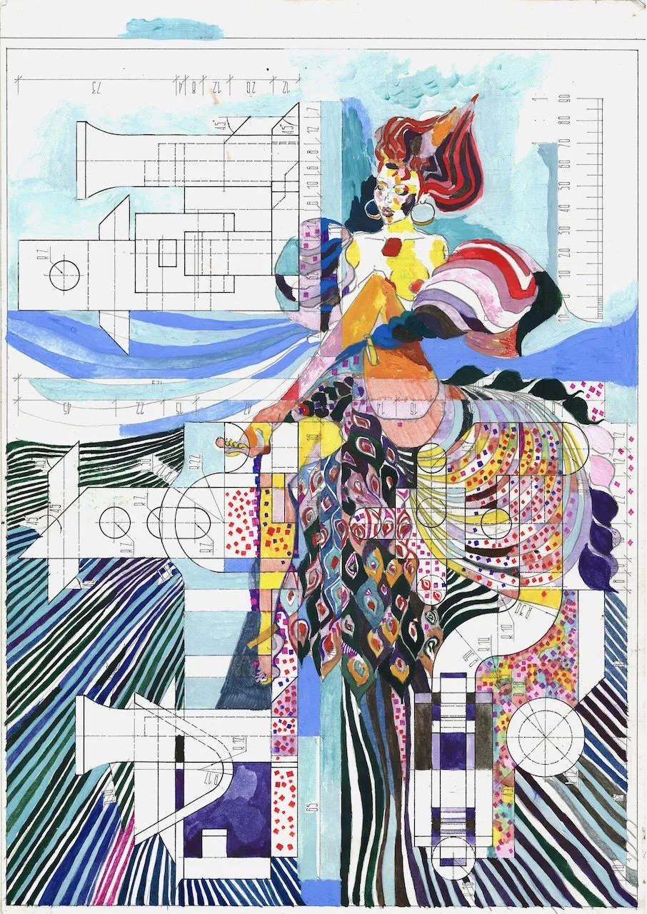 A WOMAN’S VICTORY 2022. 16.5"x11.7". Series "Predestination or Coincidence?". Paper, watercolor, pencil, felt pen, gel pen, ink.